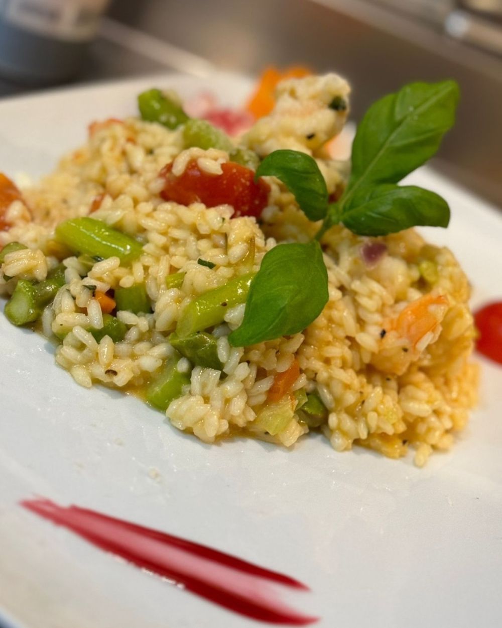 mit frisch gebratenem Gemüse in Tomatensauce